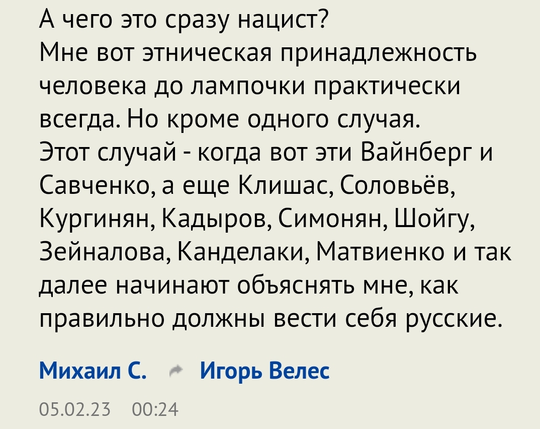 Це ж у вас не єдиний регіон бібліотек і музеїв, правда? Там сибірські сурові мужики також не ломоносови, і інфільтруватися нам до них значно простіше, ніж до дагестанців, тому що ми зовнішньо не виділяємося і мова у нас така сама. І зробити ви з цим нічого не можете, і де ми наступного разу організуємо заколот ви не знаєте. Сьогодні проти євреїв, завтра проти тарифів ЖКХ, післязавтра мера на віли піднімемо, якщо це ми організатори. Чи ви собі думаєте, що мера росіяни люблять більше, ніж євреїв? Та ні, не більше.