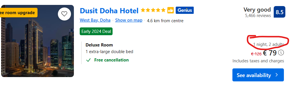 С ОНН всё понятно. Меня больше удивляют цены в 5* катарском отеле - 90 баксов за ночь в сингл. Посмотрел вообще цены в отелях - челюсть отвисла. Да ещё и такс 5% всего. А у нас с этого года повысили с 20 до 22 процентов. 😒