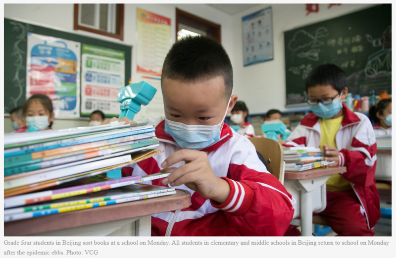 Статья в Global Times - "Schoolchildren return to mask-free campus life".