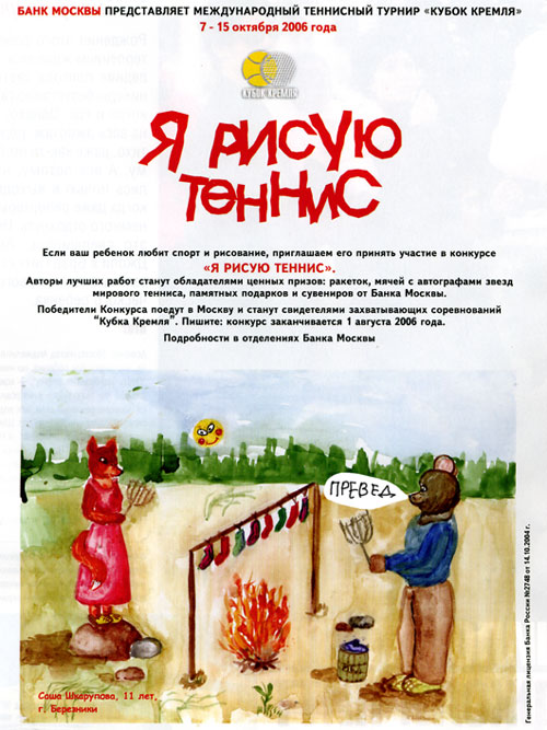 Встретил в журнале - реклама конкурса "Я рисую 30-сантиметровый теннис". Я картинку слегка подредактировал, конечно, но только слегка...