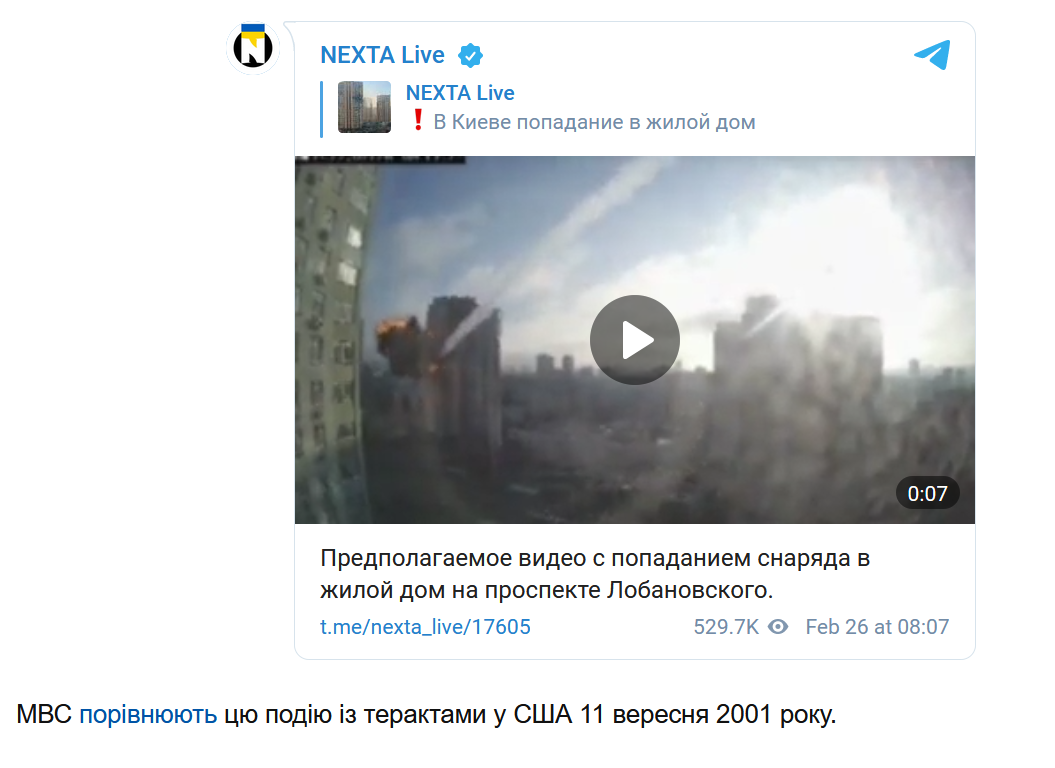 Это, блядь, центр Киева. КУДА там должны были стрелять ЗСУ, чтобы попасть да ещё и на такой высоте? Измышляйте дальше, интересно наблюдать.