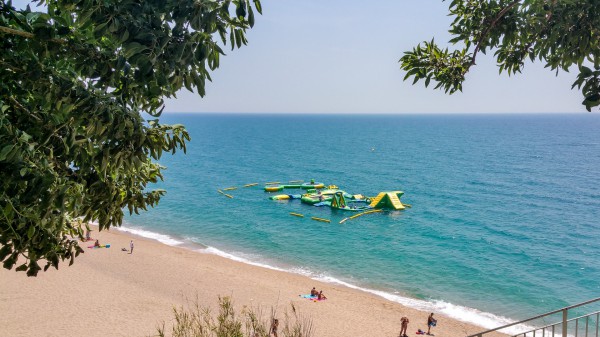 Эта штука в этом же месте и в прошлом году была. Платная, правда мы не узнавали, сколько стоит. Тех, кто подплывает просто так, отгоняют громким свистом. Детишки там скачут вполне такие большие, потому как плыть туда надо самому. То есть на умеющих плавать рассчитано. Там вроде иногда дежурит спасатель. Но не всегда. Жилетики выдают в обязательном порядке. А чтоб по это дело затянуло, это надо постараться, мне кажется, так как в Средиземном море еще фиг глубоко занырнешь с поверхности.