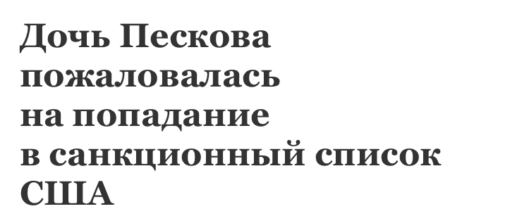 Пескова назвала попадание под санкции «совершенно несправедливым и необоснованным». «Я была очень удивлена, потому что странно вводить санкции против человека, которому 24 года и который не имеет никакого отношения к ситуации», — пожаловалась она.