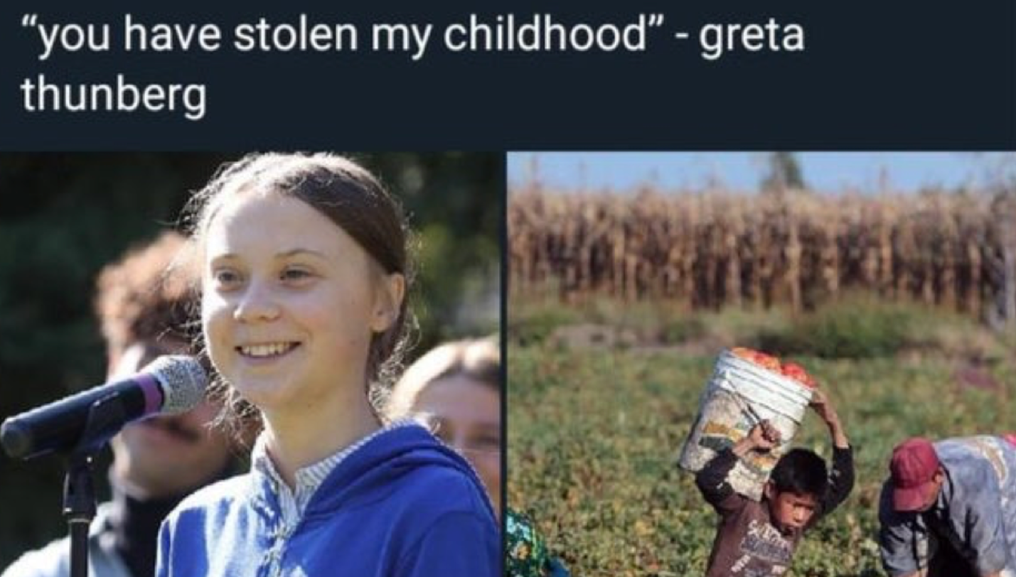 Рядом с Гретой флаг, на котором написано "Free Palestine". Этот лозунг означает уничтожение государства Израиль и 9 миллионов его жителей. Опустим еще красный кулак, один из вариантов происхождения которого ты можешь погуглить. Уже достаточно на состав преступления или еще надо объяснять что-то?