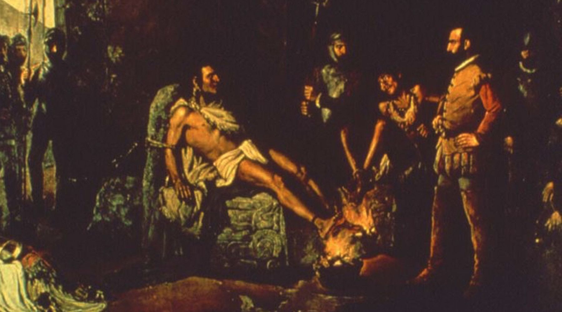 "испанцы подвергли его жестоким пыткам" - ну, культурно пообщались, обменялись культурами, взаимно разнообразили словарный запас.
