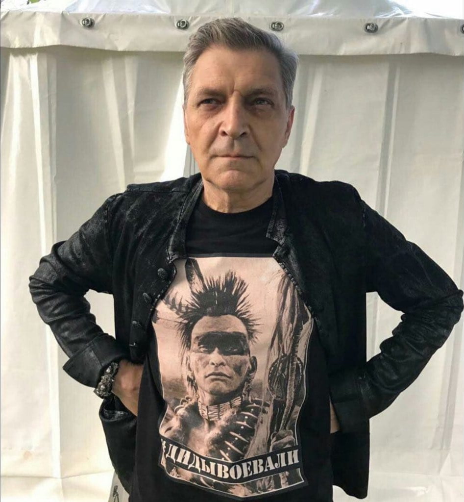 А на майке у него, если не ошибаюсь, - кадр из древнего уже "Танцующего с волками".