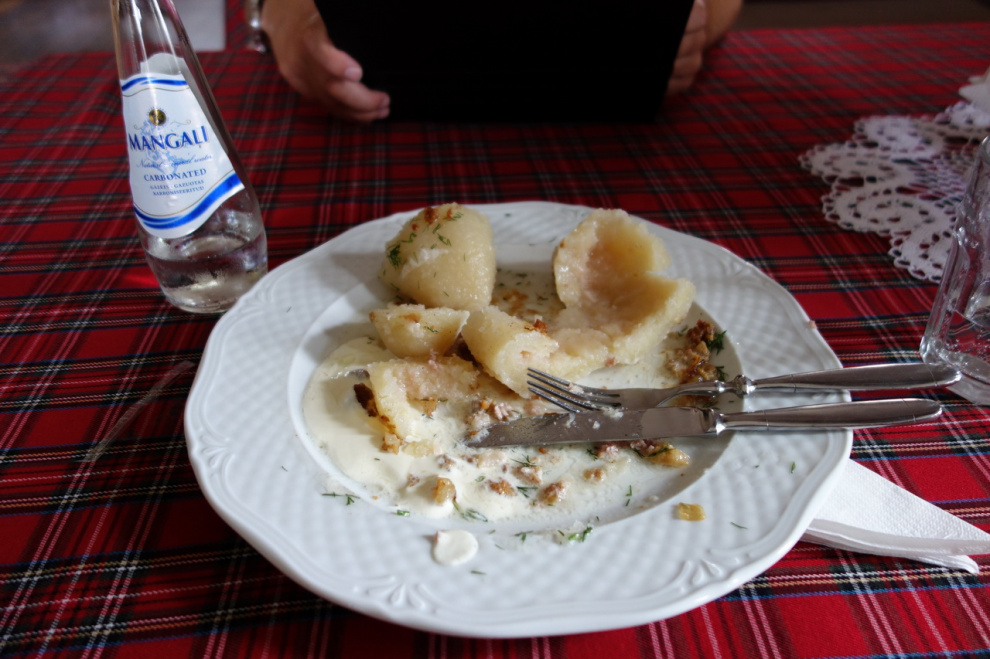 Да, ну и весь обед на троих (борщ, цеппелины, вода, квас, чай) нам обошелся в 12 евро. Просто копейки. Друзья сказали, что в подобных заведениях цены обычно очень низкие. Но где-то в городе в ресторане за обед спокойно можно отдать на троих 40-50 евро.