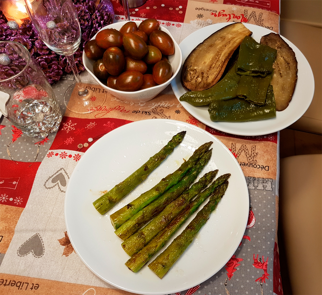 В этом году я решил на сто процентов избавиться от диктата праздничного стола и принципиально свой новогодний стол сделал вот такой - это мой обычный ужин. Ну и так как на ужин я обычно мясо не ем (тут приходится выбирать: или кусок мяса, или пара бокалов вина, а я в любых обстоятельствах предпочту вино), то и для новогоднего стола никакое мясо не предусматривалось.