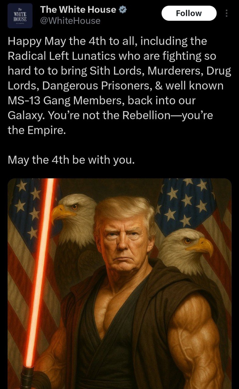 Трампусик себя причисляет к Тёмной Стороне Силы. Ну что же, заслуженно.
