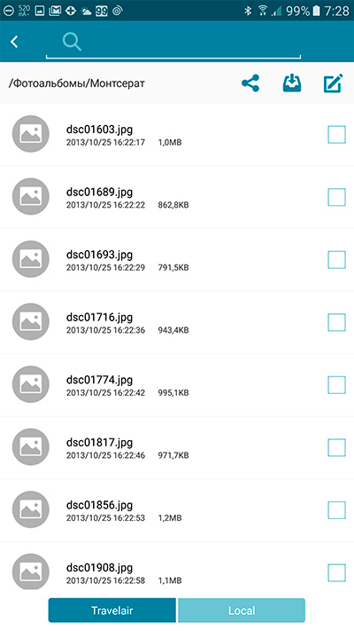 Просмотр списка файлов предельно примитивен, никак не настраивается и пользоваться им в случае с большим количеством файлов - практически нереально. Однако если все заранее разбить по папкам с описанием в названии - тогда еще терпимо. Файлами можно делиться в Facebook или через почту.