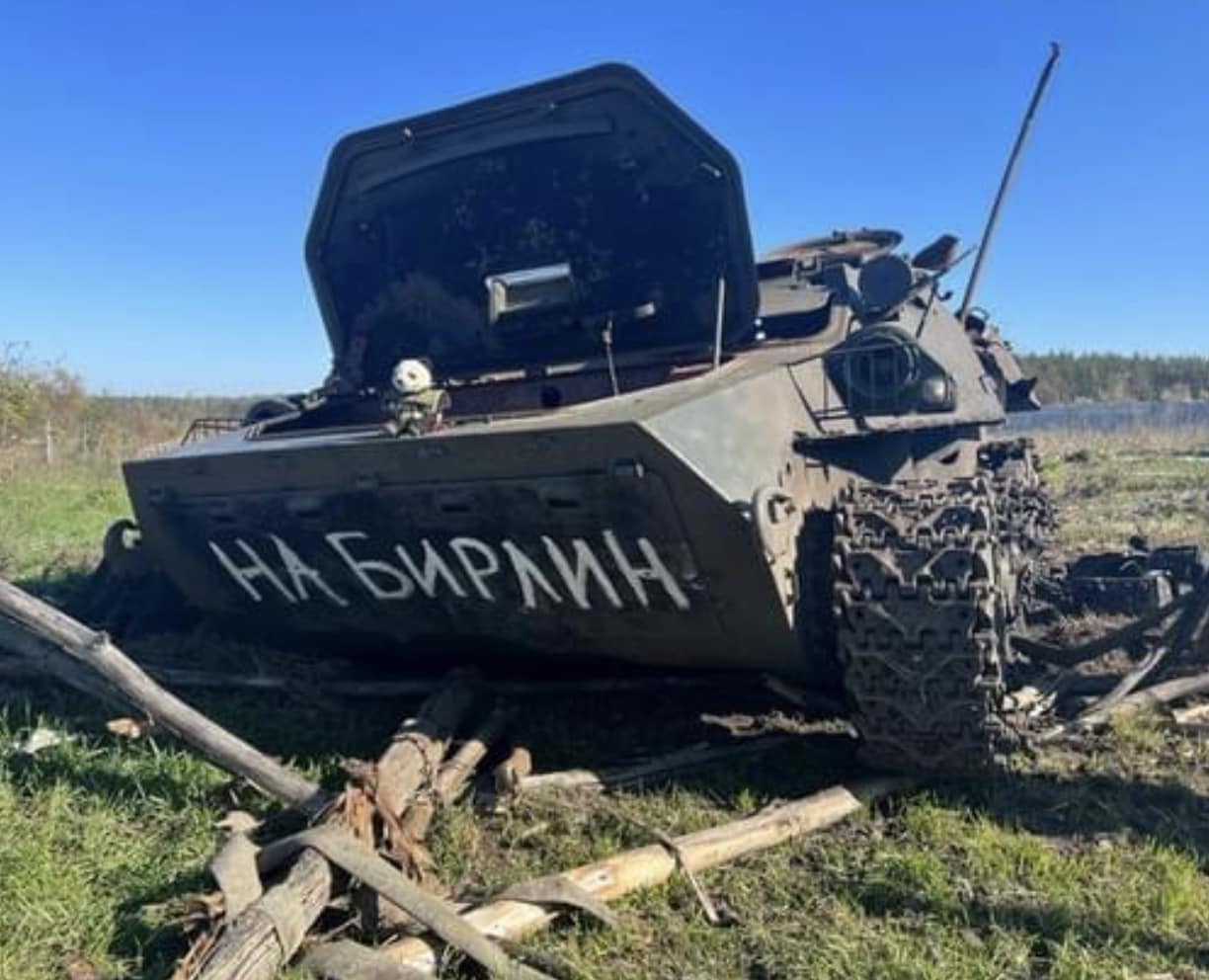 Фото техники с надписью "на Бирлин" — это декорация к фильму, который снимают украинские защитники