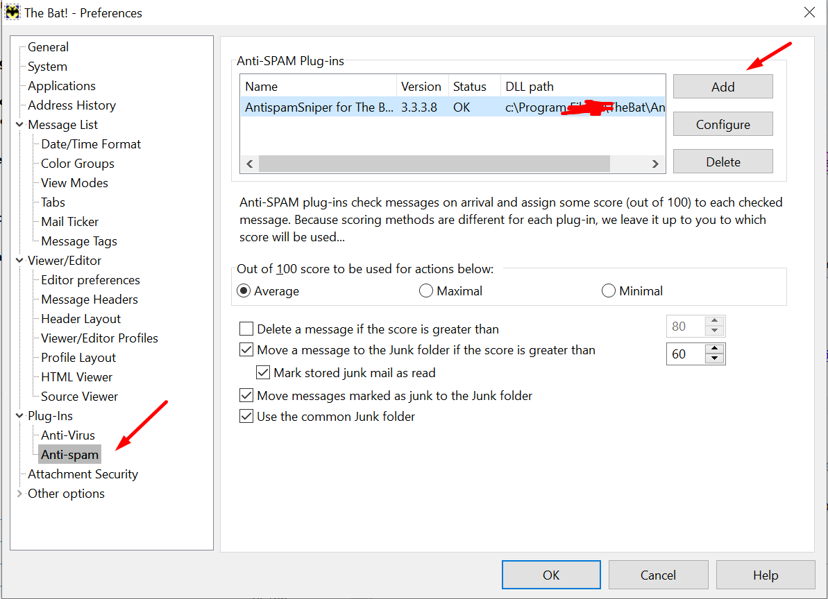 32-битные плагины работают только с 32-битными версиями TheBat/Voyager. 64-битный плагин может быть добавлен только в 64-битную версию TheBat/Voyager. Поэтому даже если у вас 64-битная версия Windows, но 32-битный TheBat/Voyager, подойдет только 32-битный плагин.