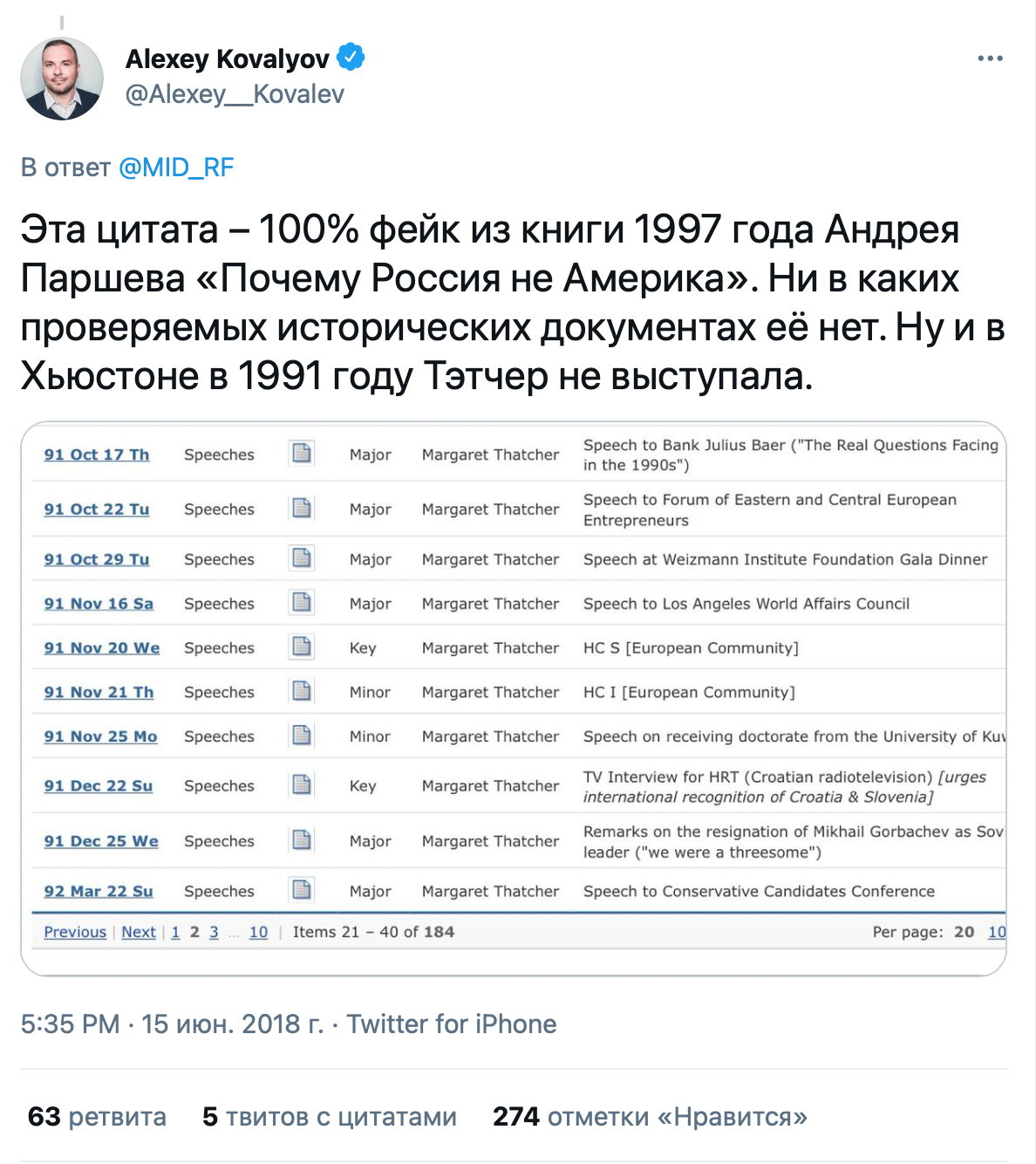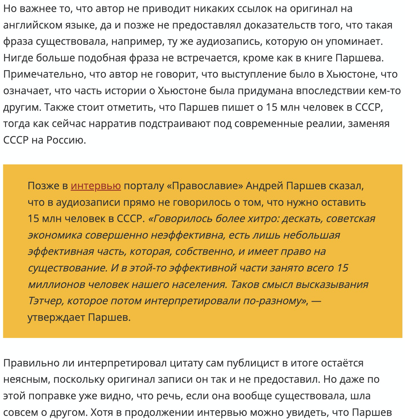 Фейк | Маргарет Тэтчер хотела сократить население Земли на 90% и считала, что в России оправдано проживание только 15 млн человек