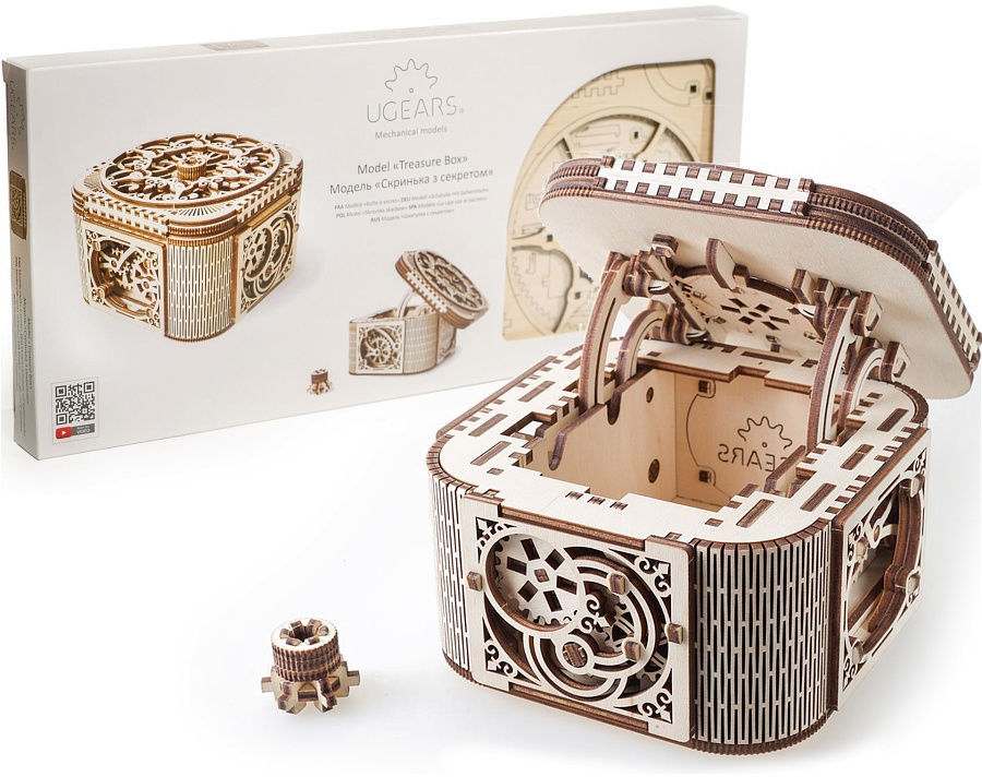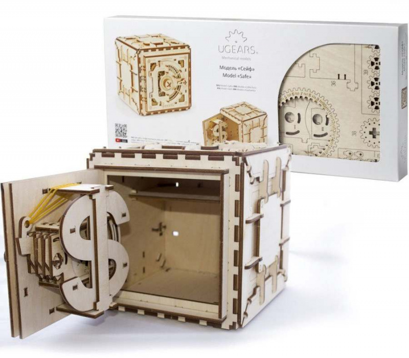 Наш с сыном любимец, пользующийся неизменной популярностью - "Сейф". Это был первый сложный конструктор Ugears, который мы собрали. 170 деталей, работающий кодовый замок, стопроцентная функциональность: младший Экслер до сих пор в нем что-то хранит и хвастается сейфом перед своими гостями. 3990 рублей, со скидкой - 3192 рубля.