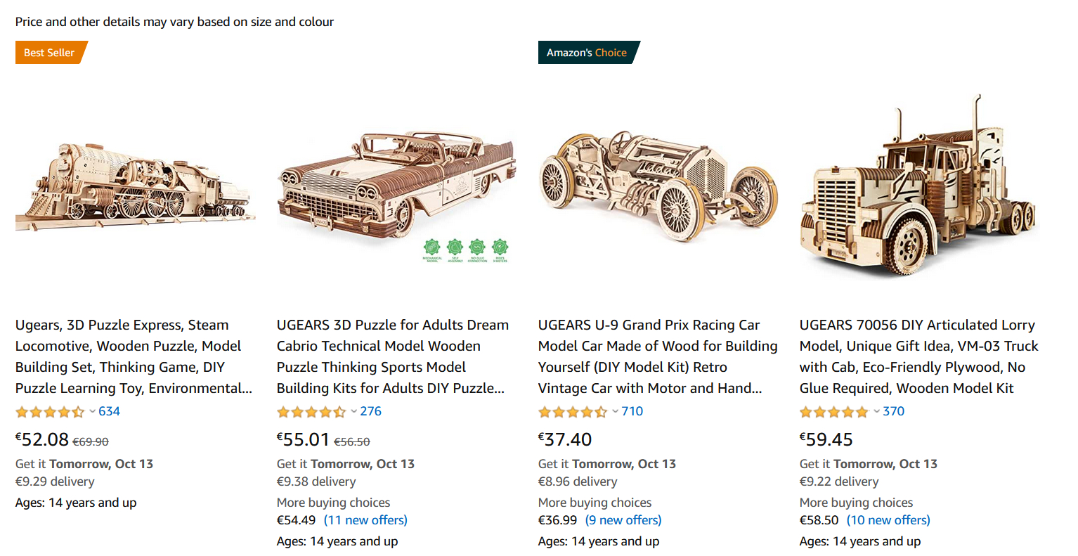 А Европе в Амазоне спокойно продается, я именно там и покупаю. Вбейте UGEARS - полно вариантов.