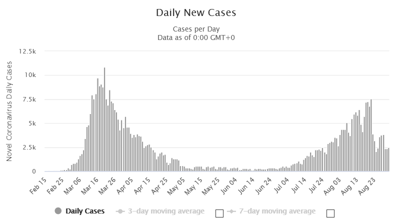 А вот Испания, где был самый жесткий локдаун, тотальный карантин почти на два с половиной месяца и где до сих пор обязательно ношение намордника, даже если вы в полном одиночестве гуляете по улице.