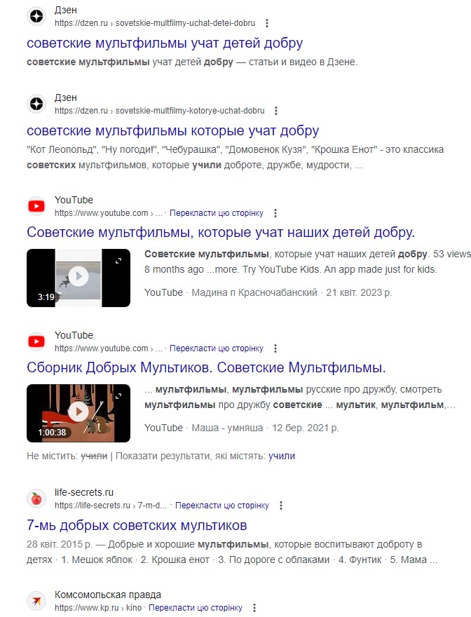 Но вот уже первый гвоздь в голову забит: добро - это советские мультики. То есть остальное, видимо, это что-то нехорошее. Именно на этот гвоздь потом вешают портреты путлеров. Если, конечно, родителям не удаётся вырвать эту заразу из головы ребёнка вовремя.