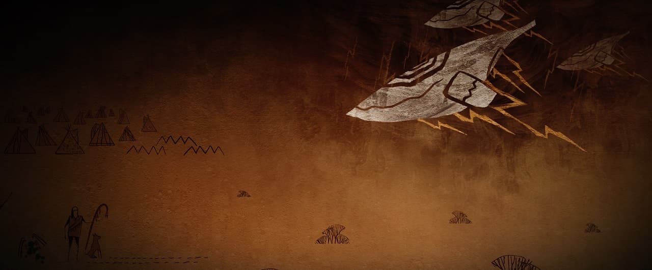 И тут олень! Нара как настоящий охотник начинает бежать за оленем с топором и азартно метать топор в оленя, промахиваясь раз за разом. В результате погони олень убегает, а верный пёс Нару попадает хвостом в железный капкан. Капкан, как мы чуть позже узнаем, поставили первопроходцы, к тому моменту уже приплывшие в Америку. Первопроходцы одеты в бороды, меха и ружья, и почему-то похожи на гномов из «Властелина колец». Но пока Нару просто бьёт капкан камнем и освобождает пса.