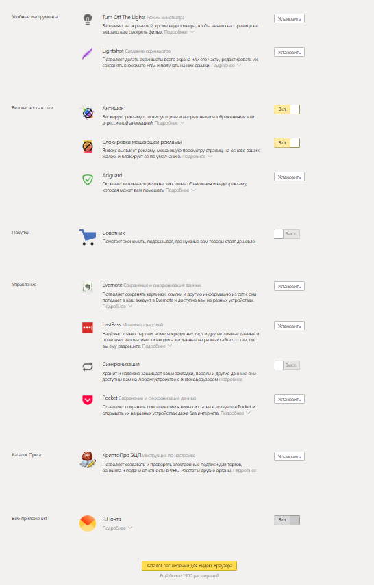 Ё-маё, я, конечно, в курсе, что любая слежка/активность/сбор данных или что-то подобное будет, масштабы несколько удивляют. Вот у меня (правда, недавно переустановил - поставил VPN попробовать - браузер отказался напрочь загружаться, пришлось удалять и заново устанавливать, установка поверх не помогла)). Мои расширения, и те сам установил.)