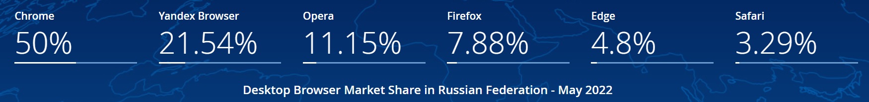 Статистика по России: Edge и Safari значительно уступают браузерам Яндекс, Opera и Firefox