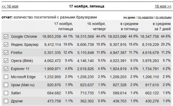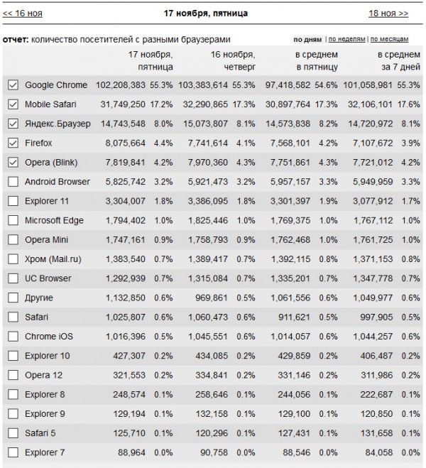 Ну, как видим, на десктопах у хрома 57%, практически вровень с тотальной статой.