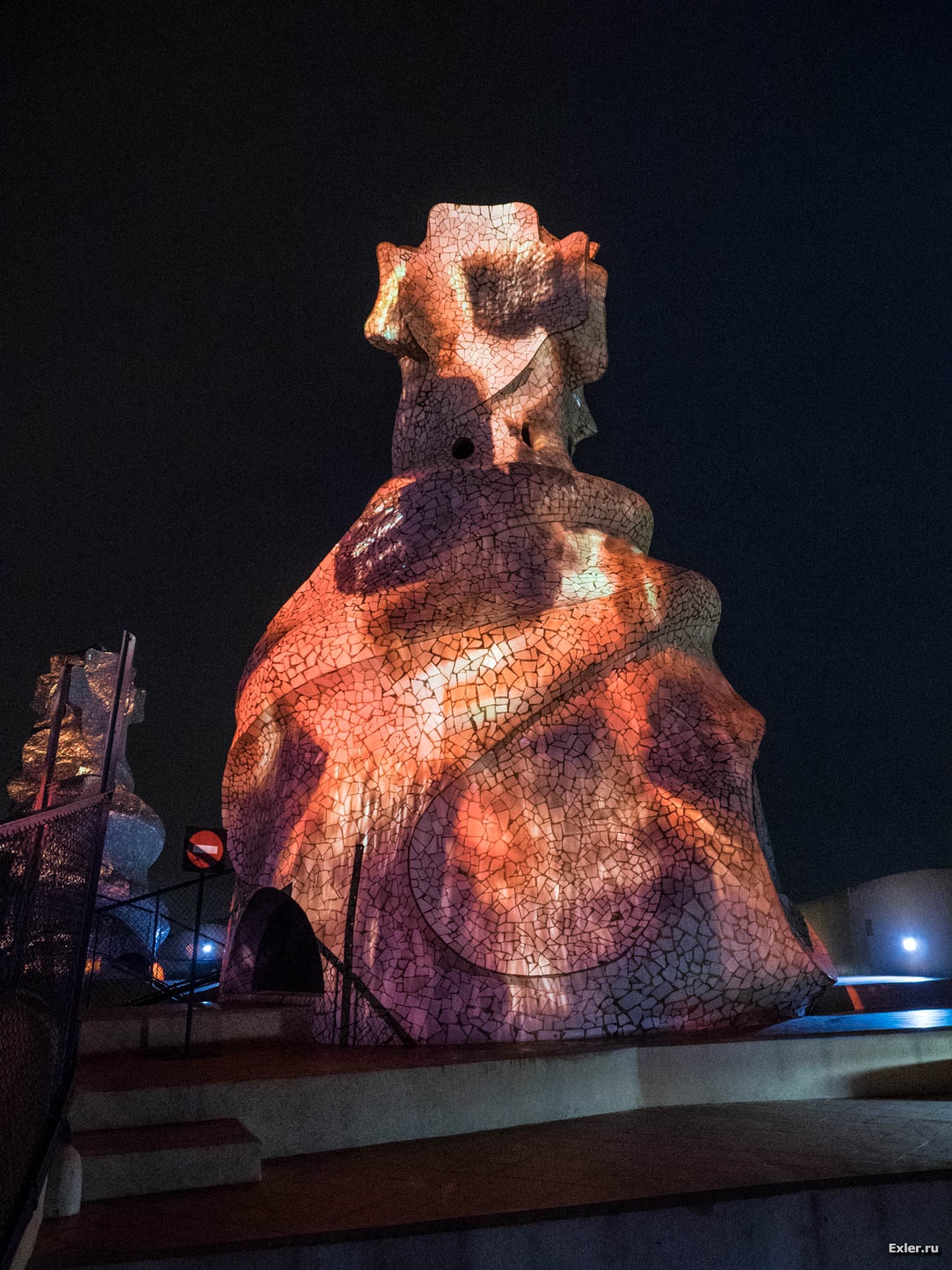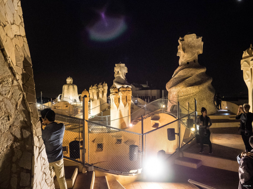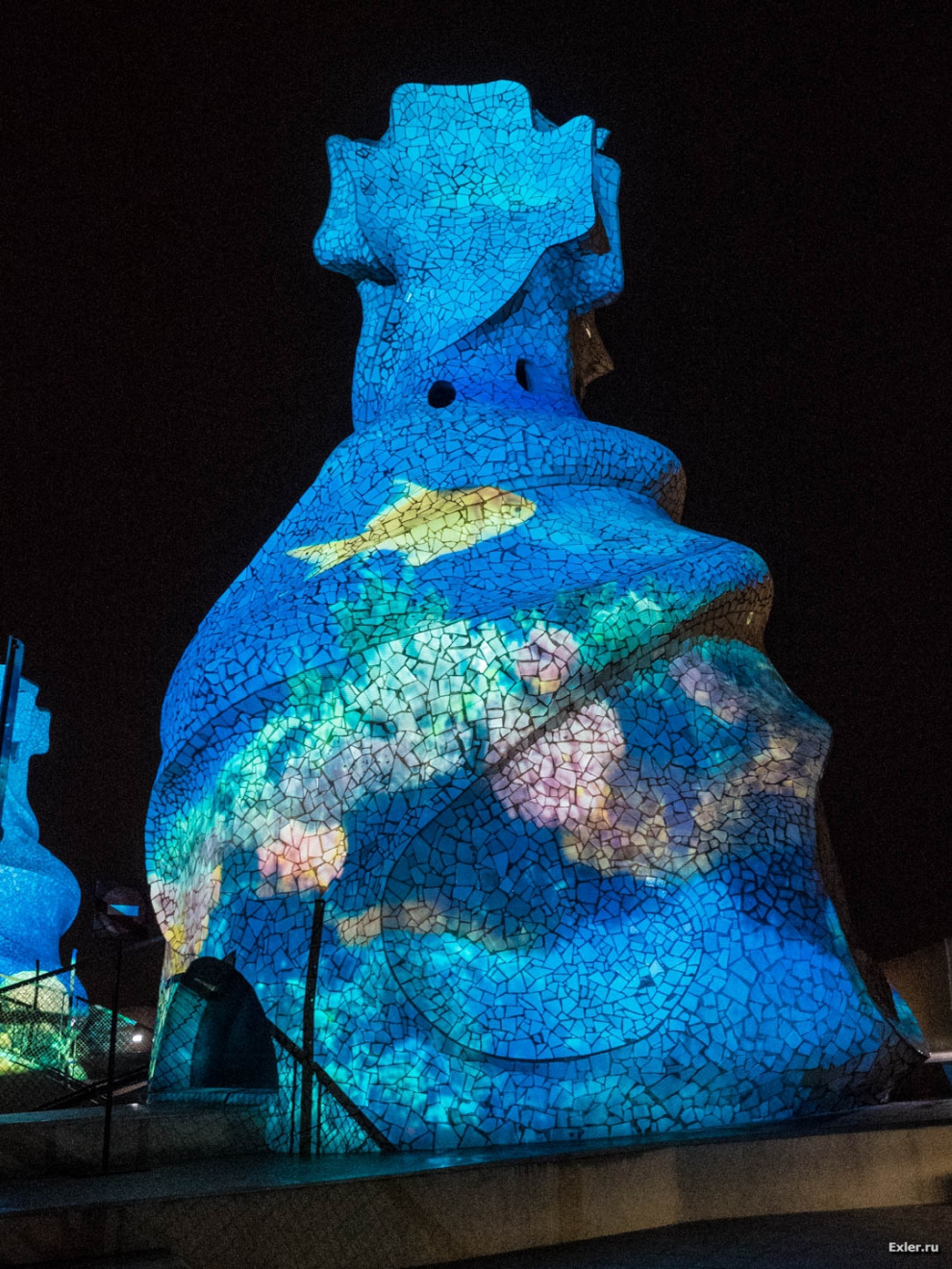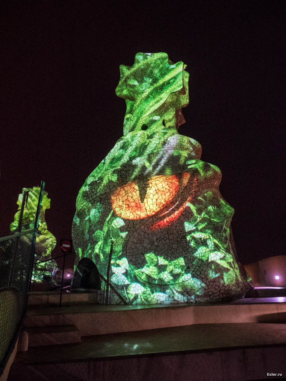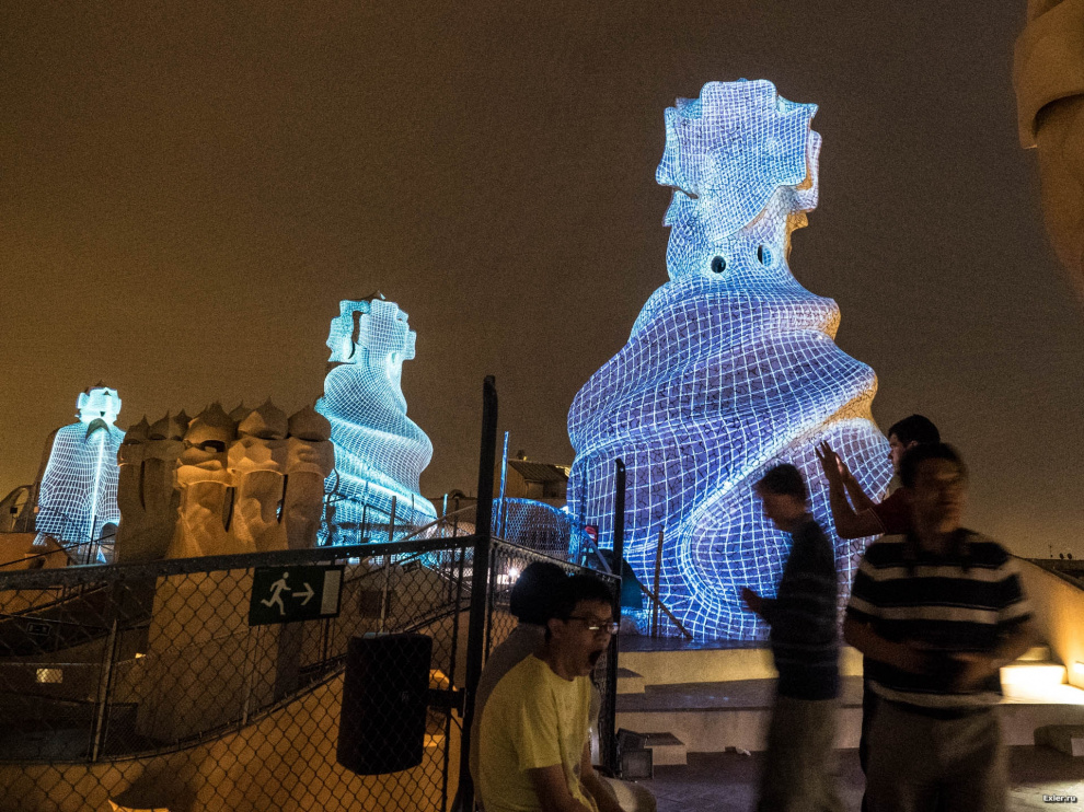 После этого началась вторая экскурсия со световым шоу. В самой экскурсии было мало чего интересного - экскурсовод показала парадный вход и провела по музею Гауди. А вот световое шоу на крыше было красивое.