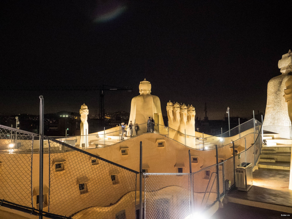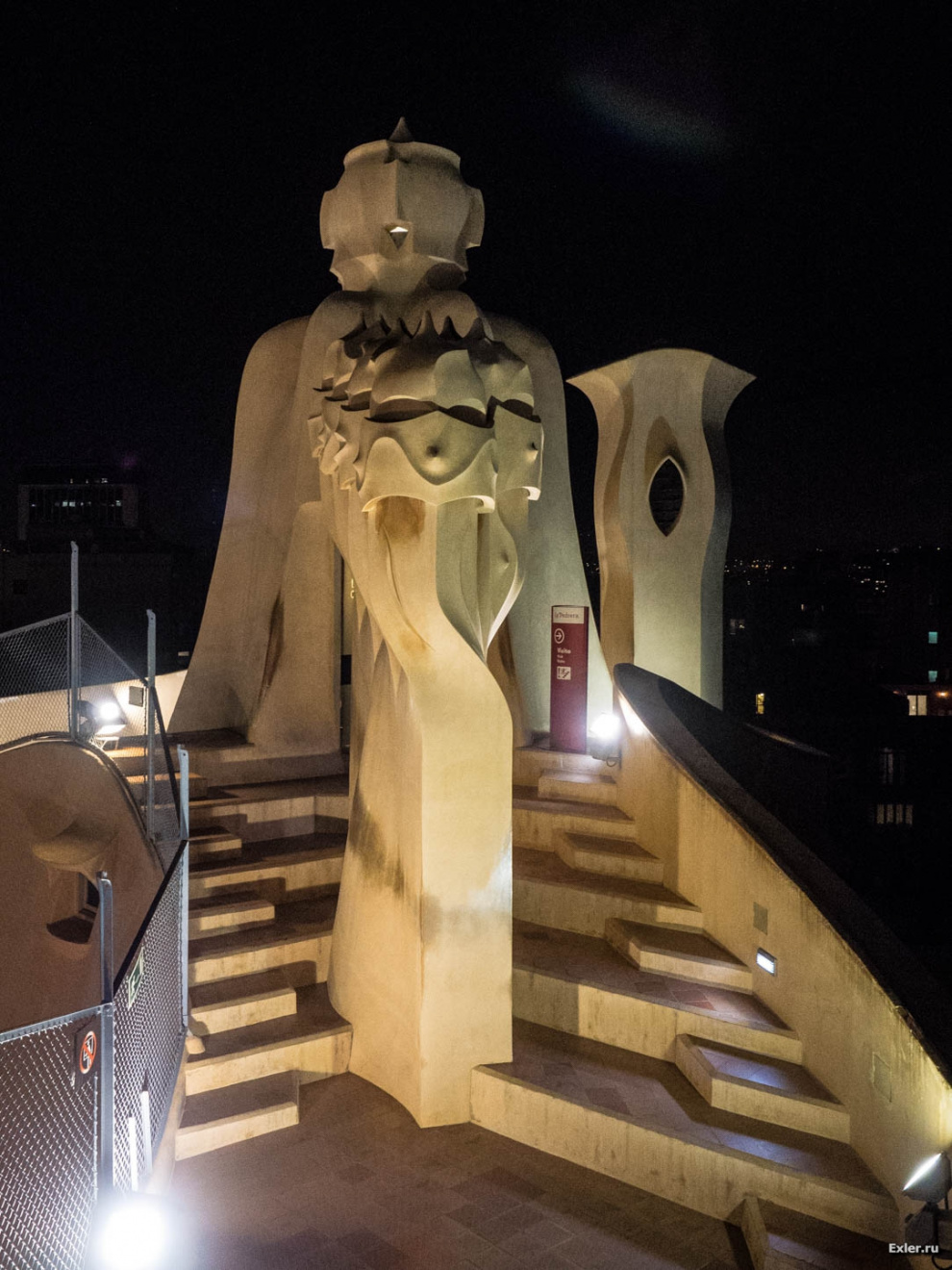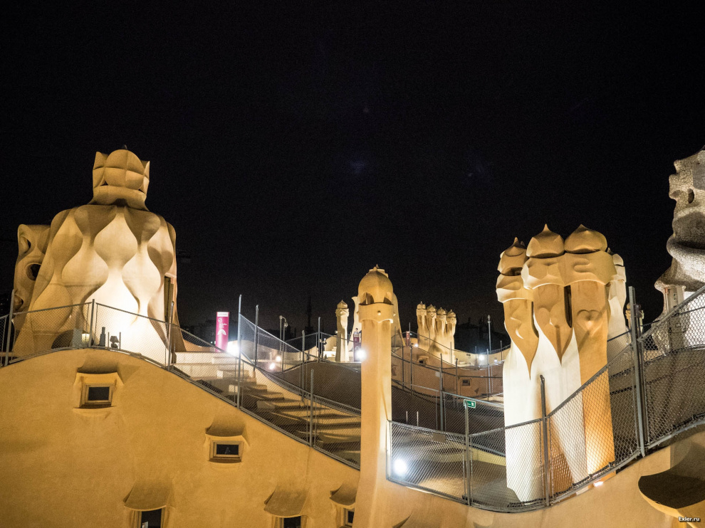 Крыша La Pedrera имеет множество дымоходов причудливой формы, также тут сделаны многочисленные лесенки, которые идут вокруг внутреннего колодца.