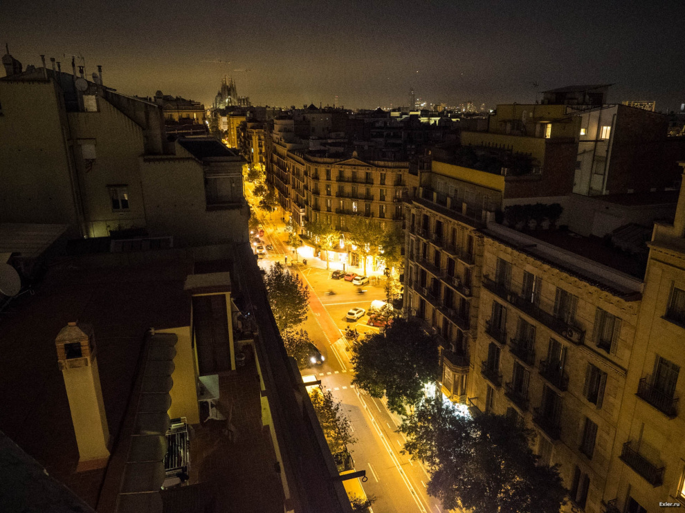 С крыши, разумеется, открывается чудесный вид на ночную Барселону.