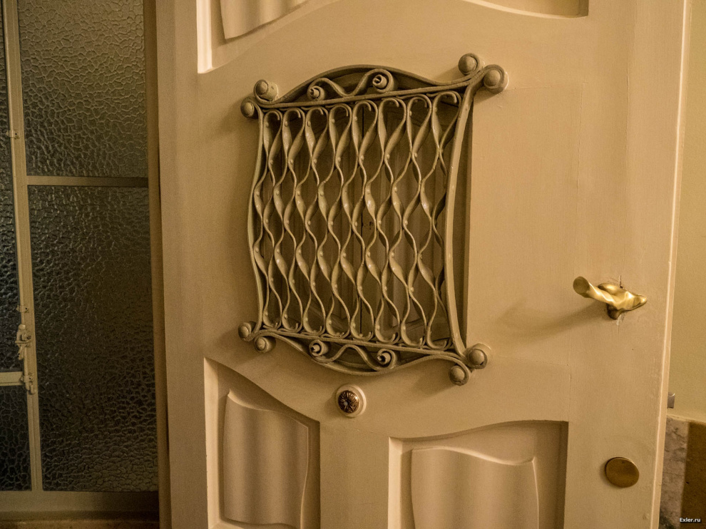 Спустились вниз к парадному входу. Шли по одной из двух лестниц - вот за этими дверьми живут обычные люди. Точнее я бы даже сказал - обычные люди с железными нервами.
