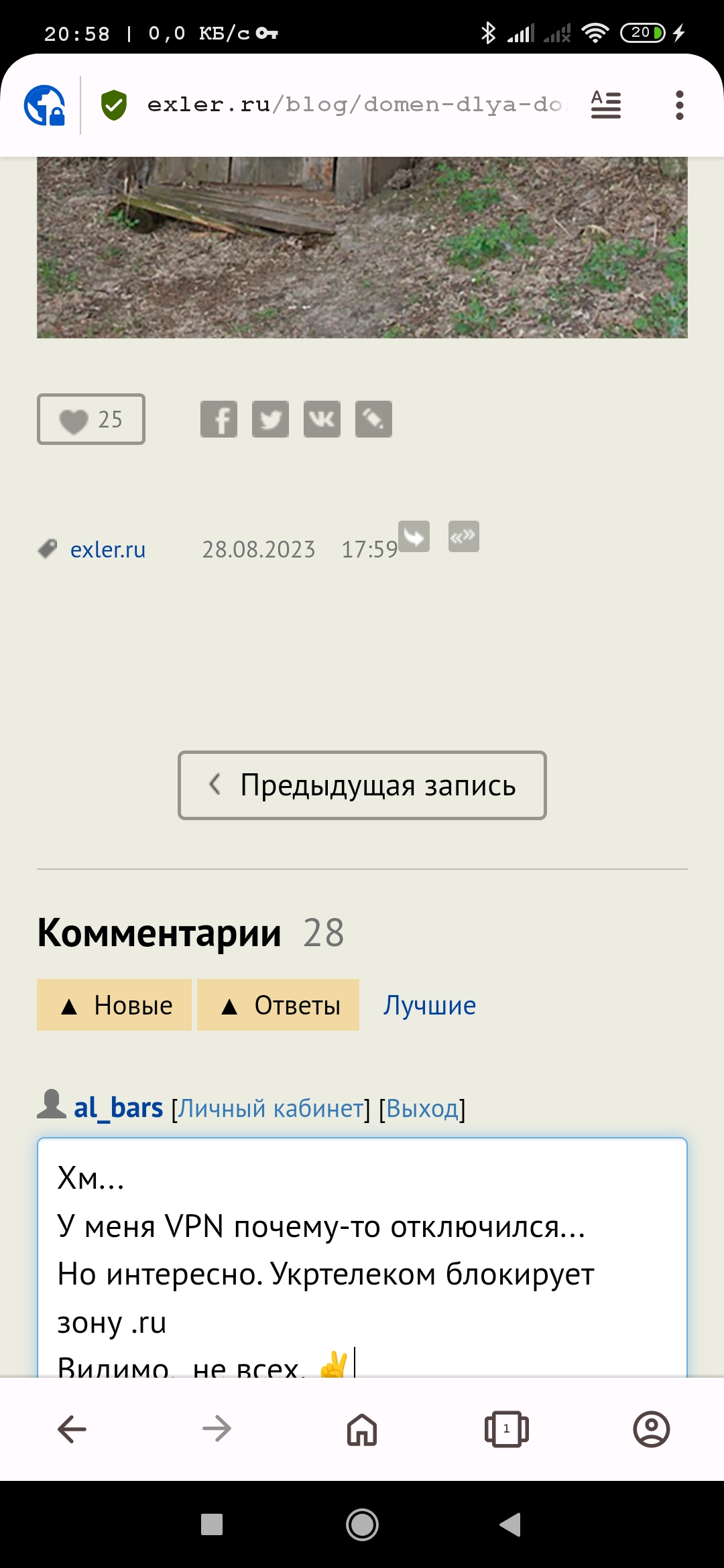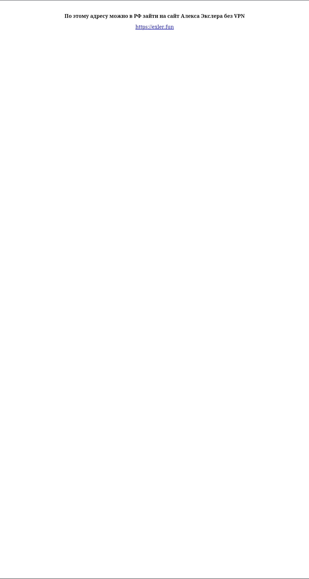 Но перед этим для читателей из РФ - положите куда-нибудь в закладочки адрес exler.world. Единственное, для чего существует этот адрес - информировать о том, какой нынче адрес зеркала для доступа на сайт из РФ без VPN. Чтобы не включать VPN даже для того, чтобы зайти на Exler.ru посмотреть на новый адрес.