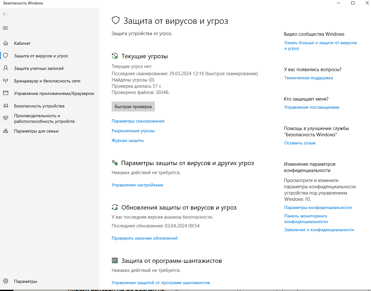 Но после появления Windows 10 проблема с вирусами стала не актуальна, и это говорит о надёжности встроенной защиты.