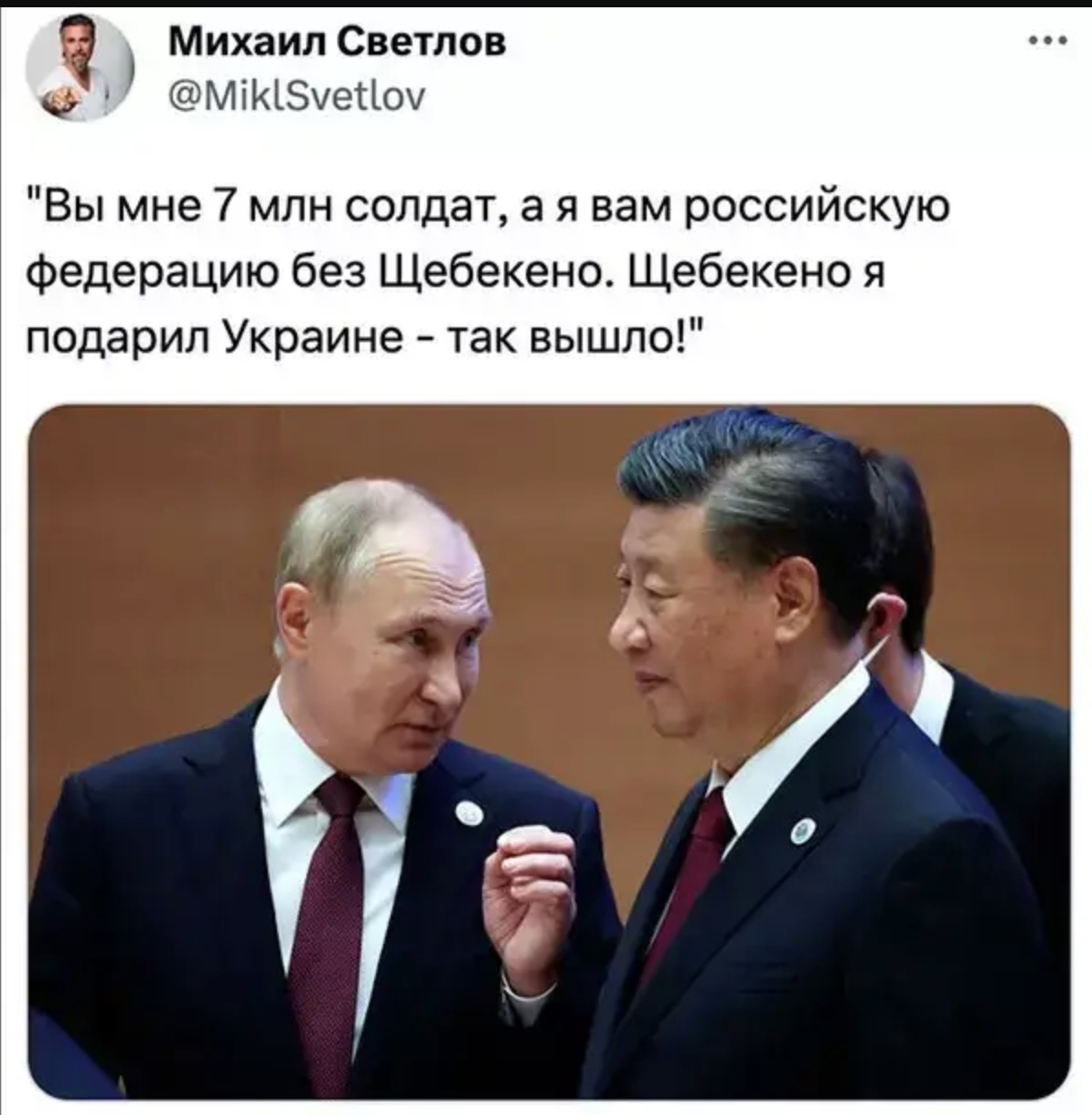 Из Китая посредник, как из Винни-Пуха сторож при пасеке. Китай всегда, на протяжении всей своей истории, считал весь остальной мир варварами и нисколько не заботился их судьбой, даже мысли такой не было. Если Китай и станет посредником, то только за очень большие "плюшки", и обдирет и Россию, и Украину, и ЕС, а самую большую плюшку потребует от США.