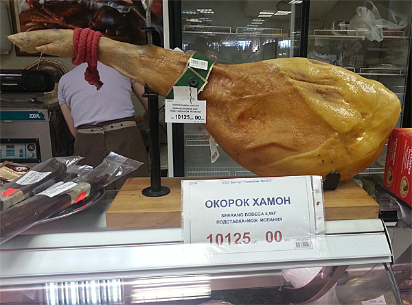 А, с хамоном да здесь напряженка. 10 тысяч за Серано - крайне дорого. А Иберико тут вообще нереальных денег стоит.
