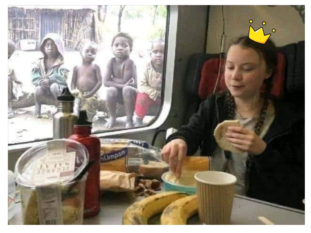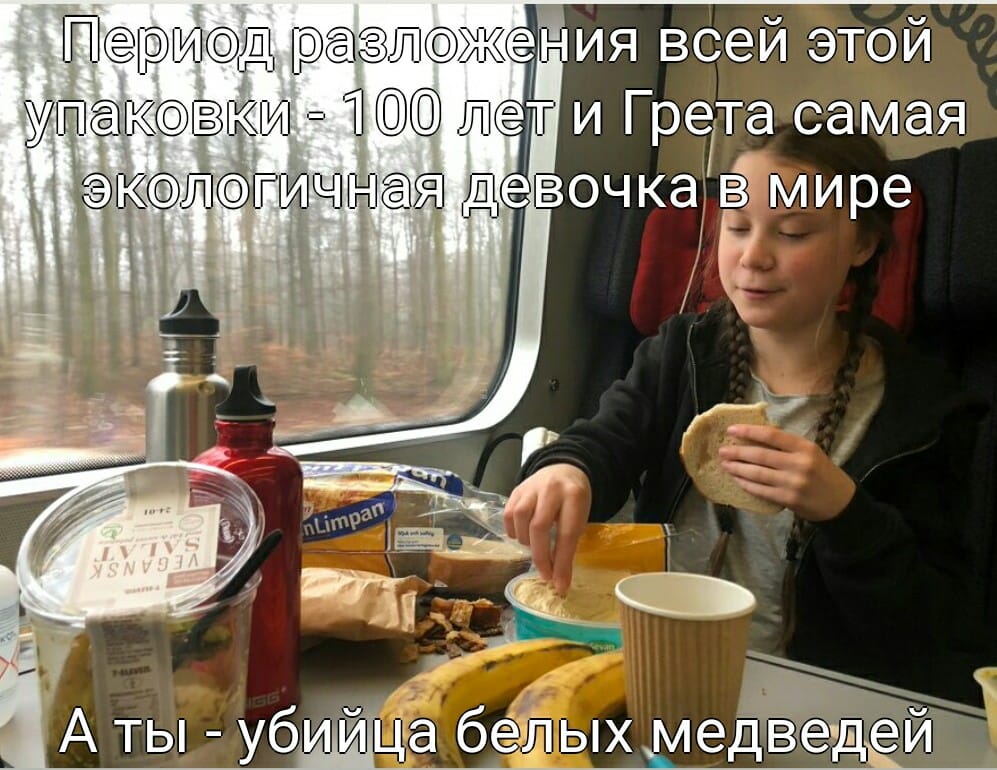 Грету научили показывать пример экологической аскезы. Свой великий круиз Стокгольм - Нью-Йорк девочка совершила на парусной яхте за 4 млн евро (плюс 40 тысяч собственно трансатлантический переход с командой). (Одна хорошая артистка, правда, трактует иначе: "Грета приняла решение не идти ни на какие компромиссы. Она на яхте переплыла океан. В штормы. В непогоду. Рискуя жизнью. Героиня..." Ну на то они артистки.) Как веганы от мяса, Грета заявила, что сама отказывается от самолетов и призвала мир отказаться от добычи и использования нефти вообще. Разумеется, эта Пеппи не знала и знать не могла, что корпус яхты - из карбона (продукт нефтепереработки и основа бизнеса Гора). Яхту прекрасным образом сопровождало дизельное судно с прессой, а команда яхты позже вернулась в родной Стокгольм или куда там - на самолете.