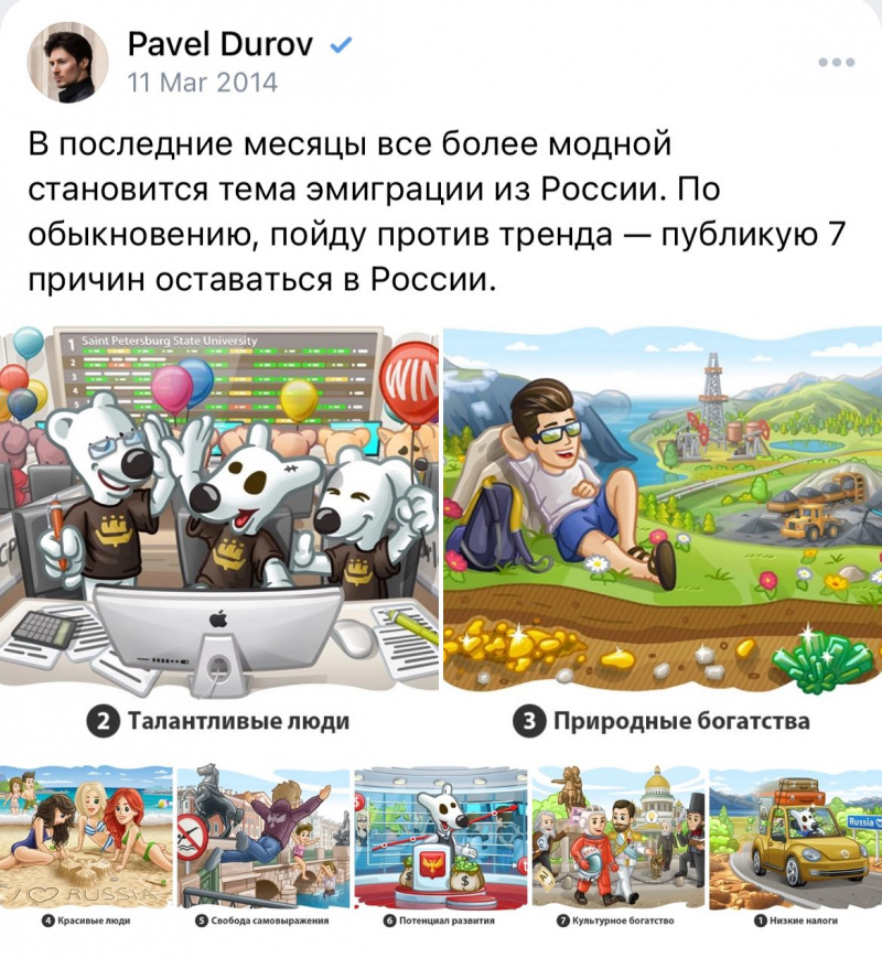 И сам Дуров это постил, когда уже Россия захватила Крым. Вряд ли он не понимал что это означает...
