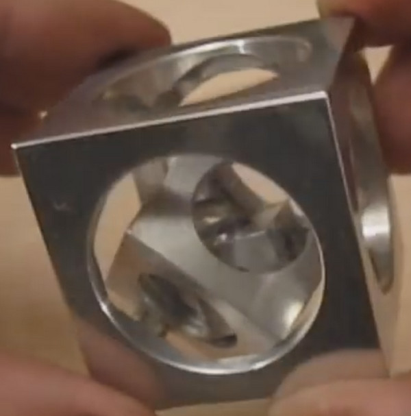 Моему деду, токарю работавшему на харьковском заводе такое подарили на 60-летие. Только там не кубы были, а несколько шаров и внутри фигура типа куба с шипами. Так что ничего особенного тут нет.