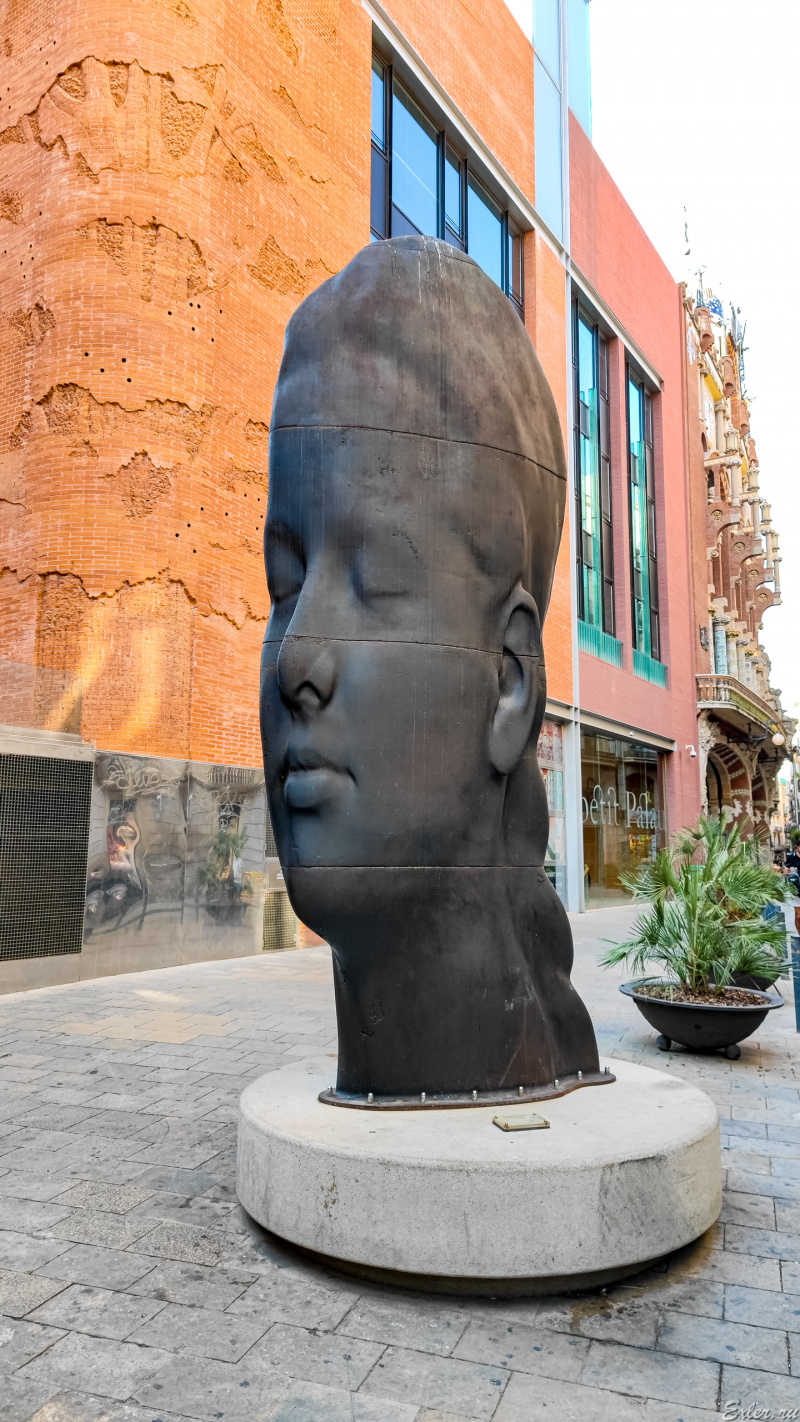 Перед зданием установлена вот такая скульптура авторства Джауме Пленса под названием "Carmela". Скульптура очень интересная: с разных сторон она выглядит совершенно по-разному, особая форма скульптуры создает оптические иллюзии.