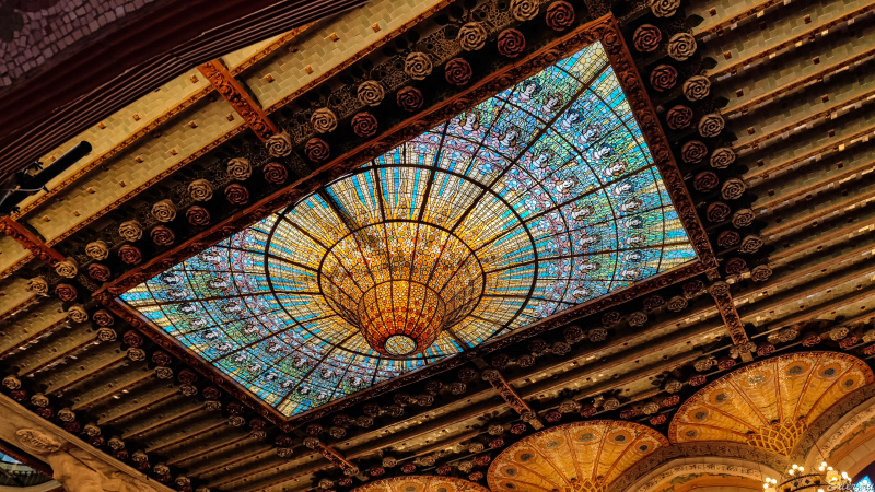 Дворец был построен архитектором Льюисом Доменек-и-Монтанером в 1905-1908 годах, строительство в основном велось на пожертвования. И это единственный концертный зал в Европе с естественным освещением.