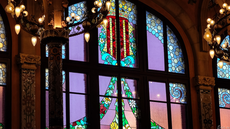 Витраж с флагом Каталонии в верхней части зрительного зала.