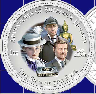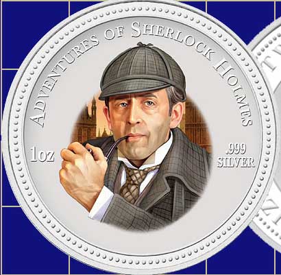 То ли они фанаты советской постановки (блестящей, конечно, но не сильно коррелирующей с духом и стилем оригинальных рассказов Конан-Дойля), то ли это такой безмерный наивняк. В общем, непонятная история. Но изображения приведены на официальном сайте монетного двора, так что это не хохма.