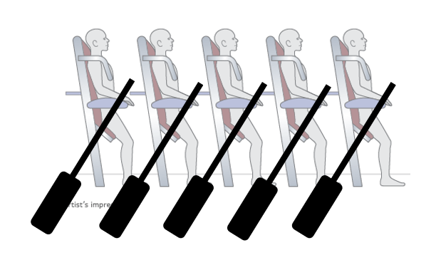 Сидящие снизу теряют поток воздуха из верхнего фильтра, что в набитом самолете неприятно, и погружаются в запахи своих соседей. А еще нужно постоянно оглядываться, чтобы не попасть под спускающегося сверху.