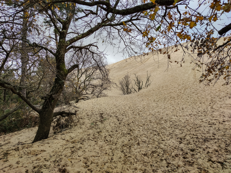 В какой-то момент Наполеон издал указ о том, чтобы вокруг дюны в изобилии высадили леса - для защиты территорий. А защищать было что: дюна все наступала и наступала, в тридцатых годах прошлого столетия она аж ухитрилась поглотить целый дом, который очень неосмотрительно был построен недалеко от нее на пути продвижения.