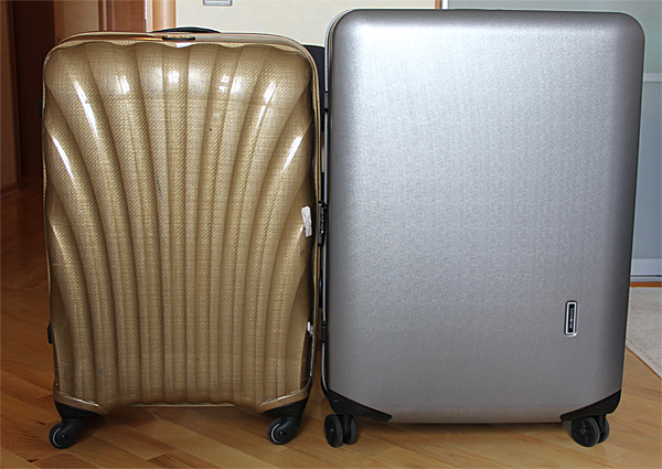 Второй вопрос (был бы очень благодарен, если бы Вы спросили у самсонайта) - на хрена они делают 4 колеса? Выступающих за корпус, блин. Каждый, кто много летает знает чётко - средняя жизнь ЛЮБОЙ выступающей детали на чемодане - 2-3 рейса. Кроме того, эти колёса неизбежно маленькие. Для аэропорта это ОК, но пройти 5 метров по тротуару (или 100 до своей машины на стоянке) - уже очень затруднительно. В то время, как идеальное решение давно придумано: два сравнительно больших колеса утопленных в корпус. К сожалению, не видел ни одного Samsonite в таком форм-факторе.