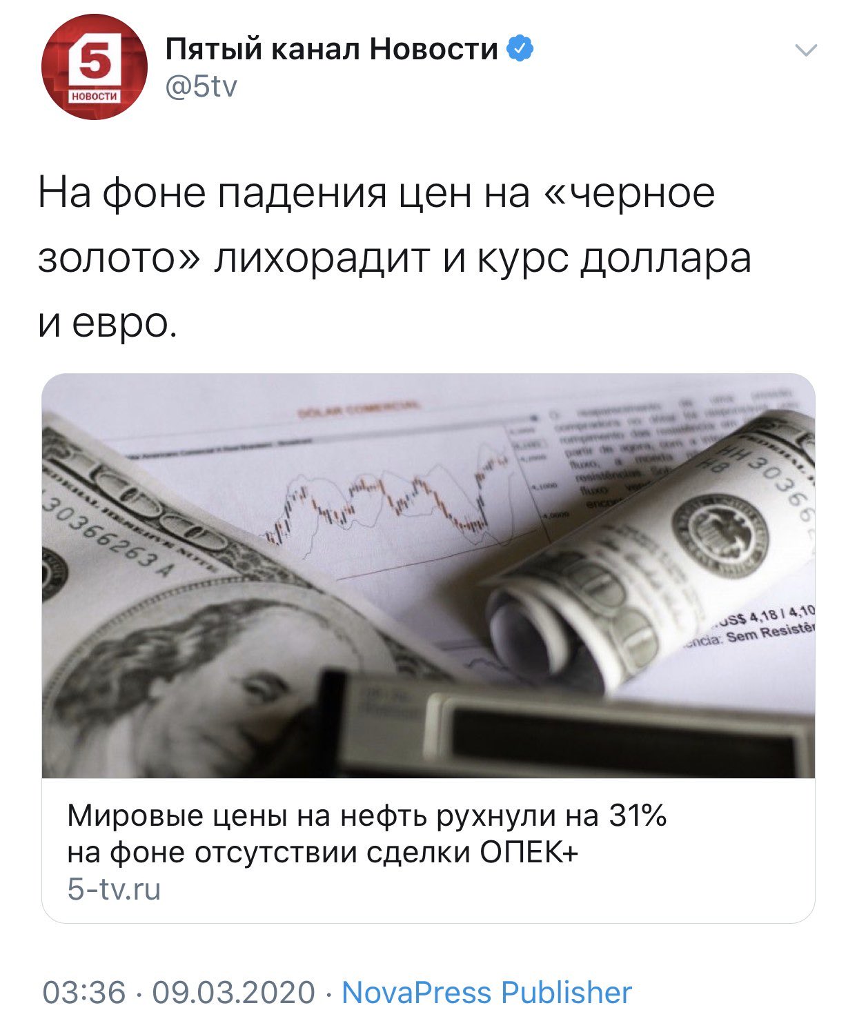 "Россия отказалась от предложения ОПЕК сократить добычу нефти на фоне снижения спроса из-за коронавируса. Это привело к рекордному обвалу цен".