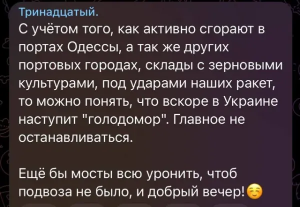 Но в целом пост показателен: россиянин искренне надеется на голодомор украинцев, которых они вроде как по-братски спасают от клики неонацистов.