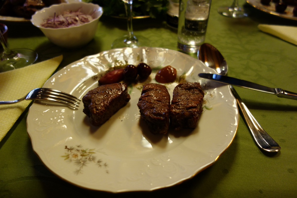 Ну и сели за стол. Мне, кстати, всегда было интересно, когда я читал у Сталика рецепты и разглядывал фотографии блюд: а вот каково это на вкус? Потому что уже приходилось сталкиваться с ситуацией, когда на фото-то все выглядит очень красиво, а пробуешь сфотографированное блюдо - да, в общем, ничего особенного.