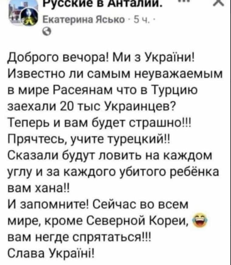 3. Призывы к убийству русских, поддерживающих войну, допустимы.