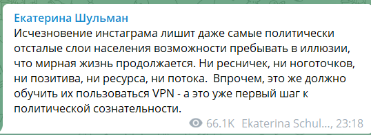 Но, впрочем, с этим все понятно. Теперь будут блокировать Facebook и Instagram, что очевидно. А вот что с WhatsApp - пока не совсем понятно.