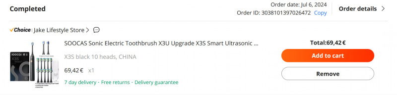 У моей предыдущей SOOCAS X3S оторвалась эта заглушка, и я заказал новую щетку - про запас, когда старая накроется. Заказал 6 июля прошлого года. Ссылку на нее не даю, этой щетки там уже нет, вот ссылка, где эти щетки есть.