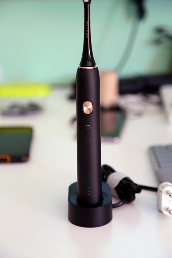 Единственное, замечаю, что сразу после зарядки щетка жужжит явно активнее, чем после недельного использования. Хотя до полного разряда ей где-то недели 3 нужно.